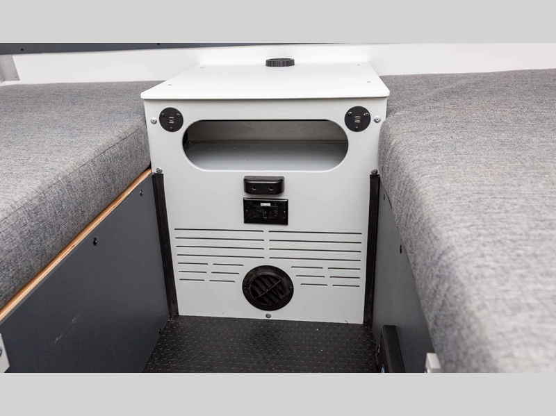 Each model includes aluminum wheels, exterior LED running lights, an on-demand water heater, and high wind lift assist. You'll appreciate the 18,000 BTU furnace inside, along with a 12V refrigerator, a Euro flush-mount sink, and electrical outlets to charge your electronics. The 200-watt solar panel on the front dormer will provide off-grid capabilities, and the off-road package will let you explore more roads!