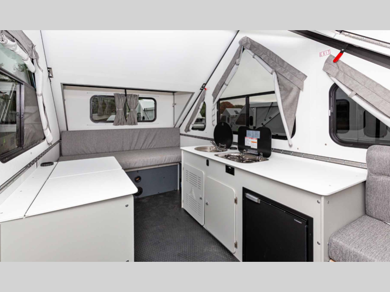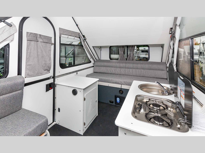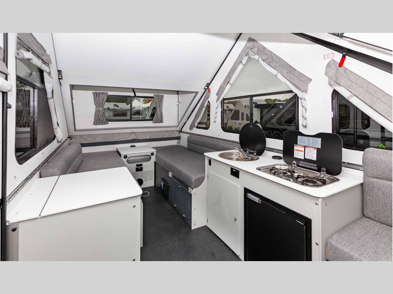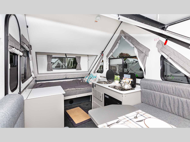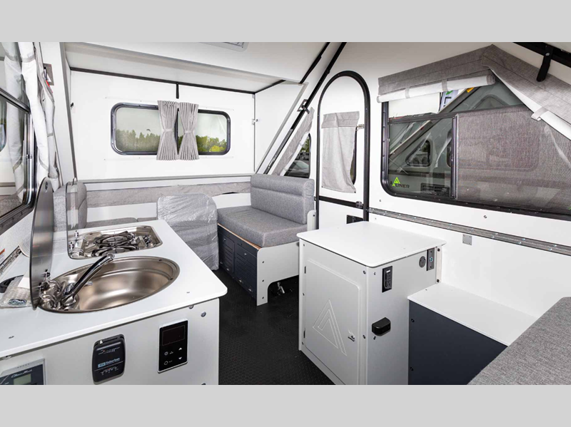 The Evolution by Aliner is the next generation A-frame camper with comfortable spaces and high-end materials, all in a package that can easily be parked in your garage.